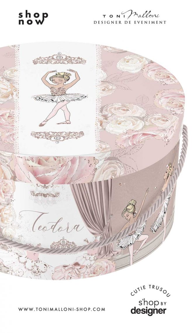 Cutie de trusou elegant cu balerina in culori pastelate cum ar fi alb si roz pudra - EV-0523