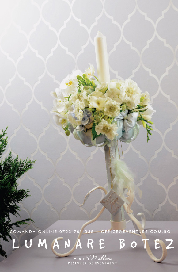 In studiourile EVENTURE concepem, producem si livram o gama variata de produse destinate nou nascutilor, cu ocazia crestinarii lor - LUMANARI DE BOTEZ HANDAMDE  -  LUMANARI DE BOTEZ SCURTE 30X8CM , un nou model unic pe piata din Romania, personalizat prin FOLIO GOLD sau SILVER. - Peste 200 de modele de LUMANARI DE BOTEZ PENTRU FETITE SAU BAIETI  personalizate prin COASERE, personalizate GRAFIC si personaliazate prin BRODARE.