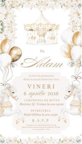 Este o invitație digitală personalizată pentru botez băiețel, gata să fie completată cu toate detaliile evenimentului.