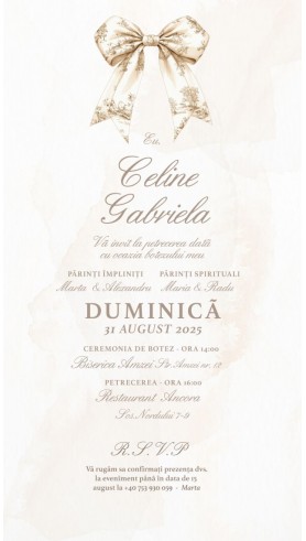 Este o invitație digitală personalizată pentru botez fetiță, gata să fie completată cu toate detaliile evenimentului.