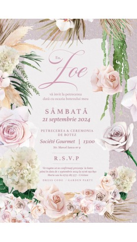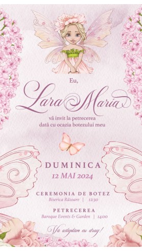 Formatul digital (.JPG ) permite trimiterea rapidă a invitației prin email, WhatsApp, telefon sau pe rețele sociale – Facebook, Instagram, TikTok. Este o invitație digitală personalizată pentru botez fetiță, gata să fie completată cu toate detaliile evenimentului.