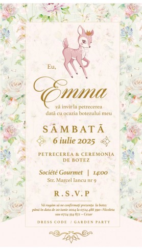 Echipa noastră va realiza invitația digitală personalizată pentru botez fetiță, iar varianta finală va fi trimisă pe email în format .jpg, gata de distribuire. Solicitarea va fi procesată rapid, iar în maximum 24 de ore veți primi invitația machetată.