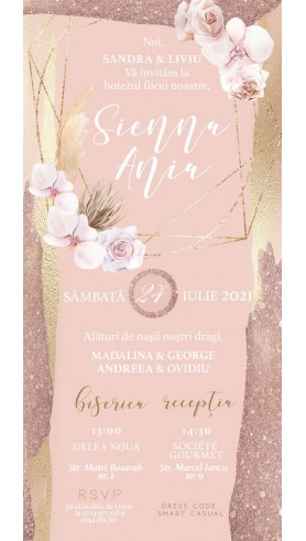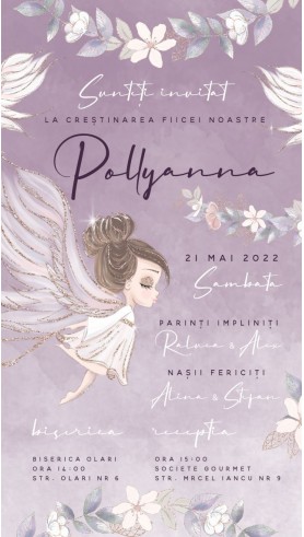 Formatul digital (.JPG ) permite trimiterea rapidă a invitației online prin email, WhatsApp, telefon sau pe rețele sociale – Facebook, Instagram, TikTok. Este o invitație digitală personalizată pentru botez fetiță, gata să fie completată cu toate detaliile evenimentului.