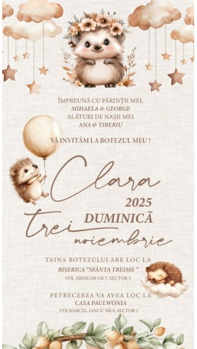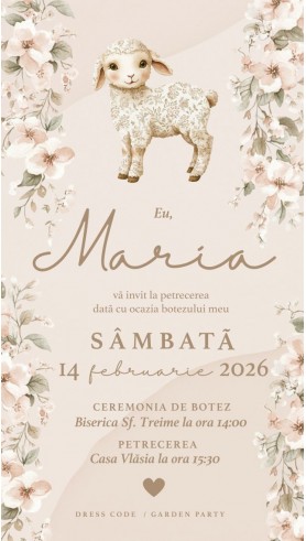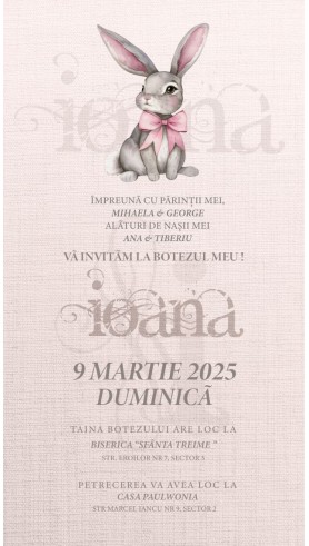 Formatul digital .JPG permite trimiterea rapidă a invitației online prin email, WhatsApp, telefon sau pe rețele sociale – Facebook, Instagram, TikTok. Este o invitație digitală personalizată pentru botez fetiță, gata să fie completată cu toate detaliile evenimentului.