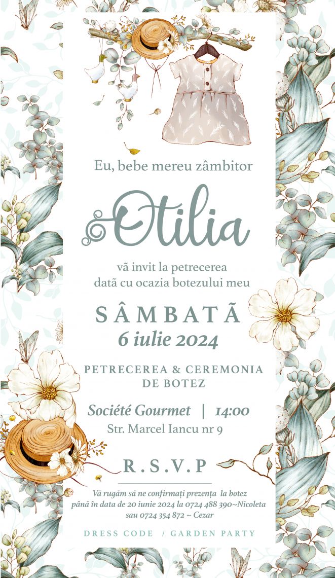 Pentru a comanda invitația, adăugați modelul dorit în coș și finalizați comanda. Imediat ce comanda este plasată, vă vom contacta telefonic pentru confirmarea detaliilor și personalizare.