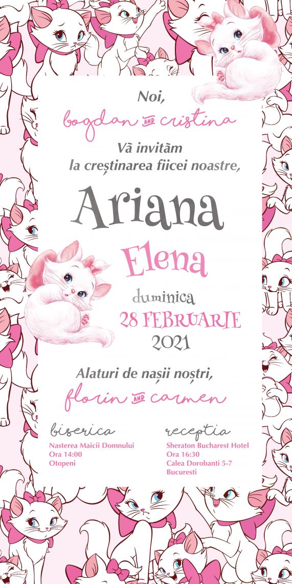 Invitație electronică botez fetiță – Pisicile Aristocrate