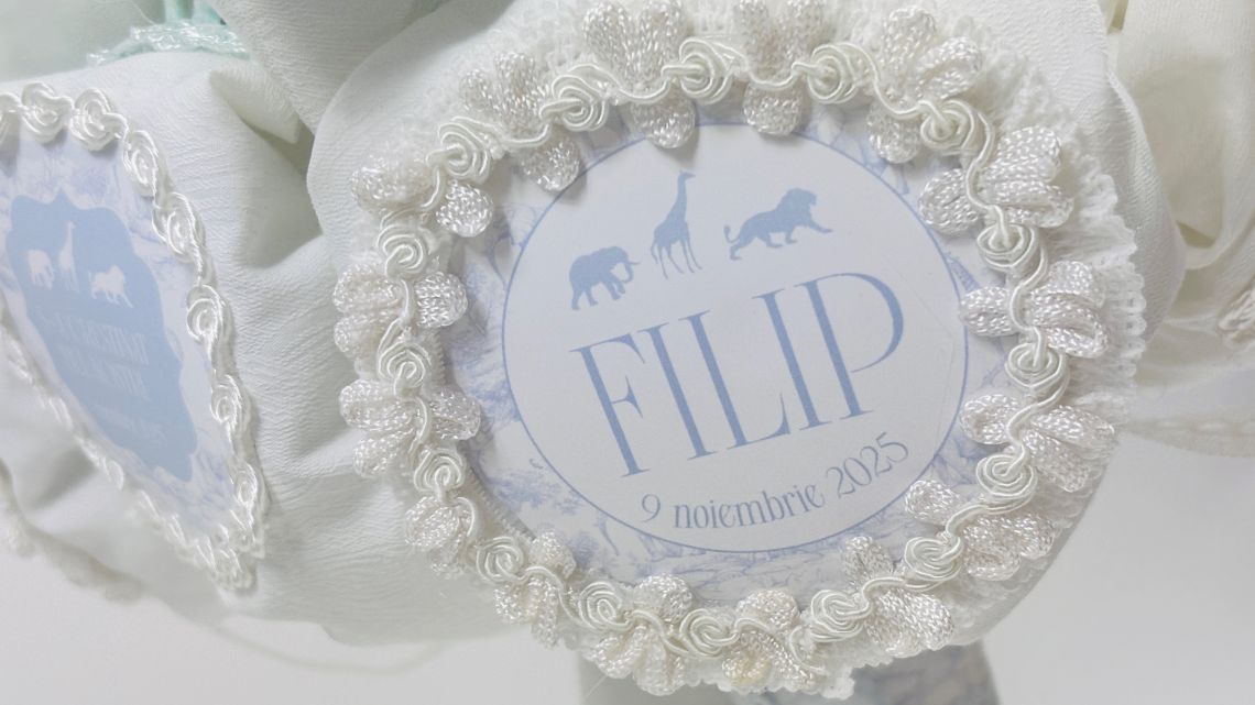 – Accesorii: cutii personalizate, prosoape, body-uri brodate, pânză de mir, panglici din materiale fine, decoruri florale tematice