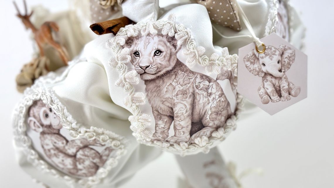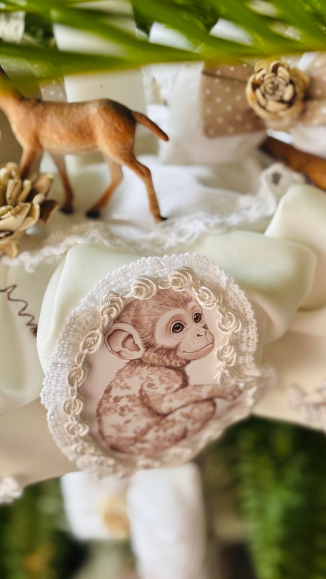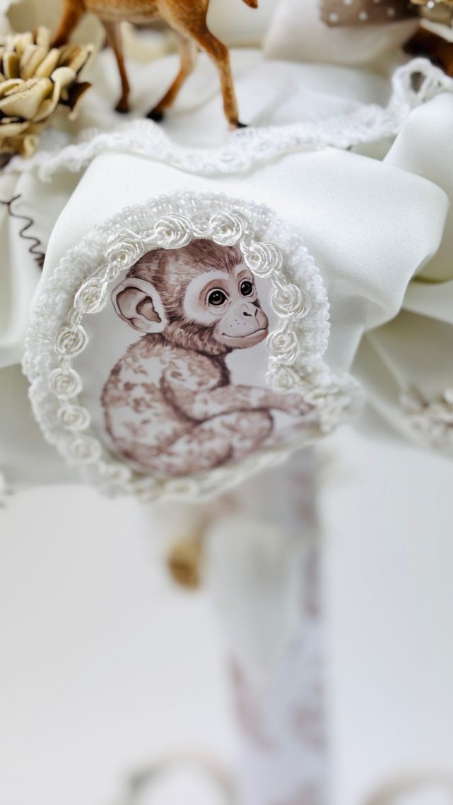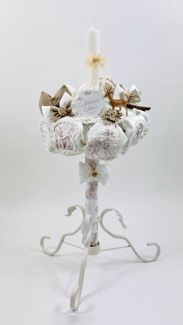 Lumânare de botez unisex – Crem Nude și Alb, Jungle Safari Baby