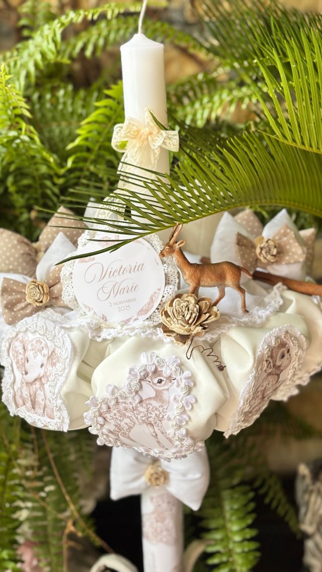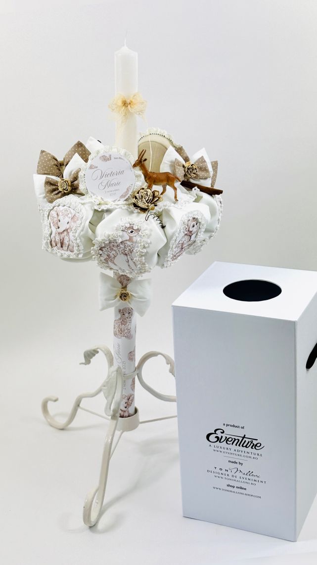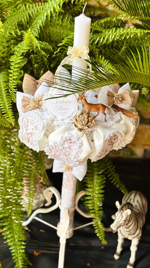 Recomandăm ca lumânarea să fie comandată împreună cu trusoul de botez Safari Nude, pentru un set armonios și complet.