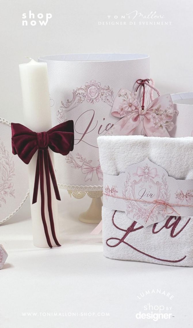 Putem imprima numele copilului, data botezului, monograma sau mesaje emoționante, dar și grafici personalizate cu animăluțe, simboluri sau elemente tematice inspirate.