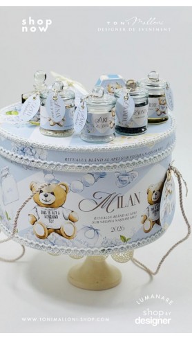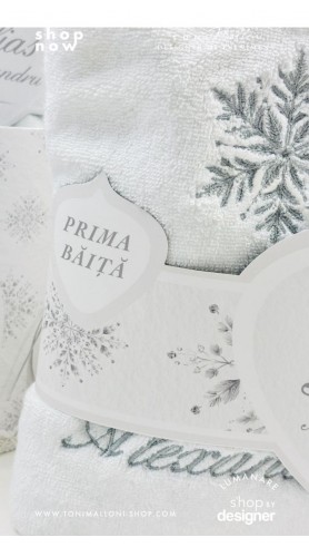 Toate produsele sunt marca Toni Malloni, realizate manual și concepute pentru a oferi bebelușului siguranță, confort și o experiență senzorială delicată. Aromele naturale, plantele atent alese, textura fină a prosopelor și elementele simbolice se îmbină armonios pentru a onora acest moment special dintre părinți, nași și copil.