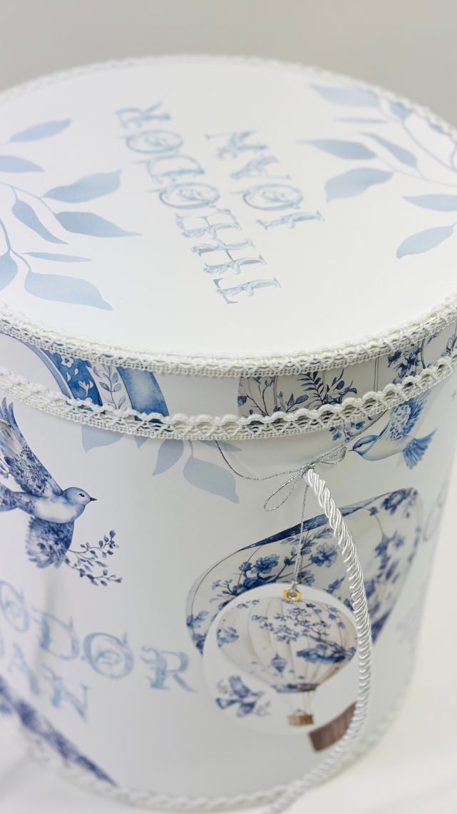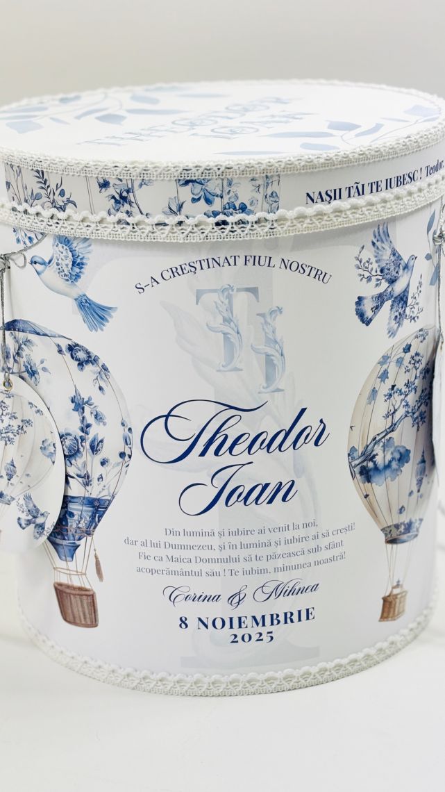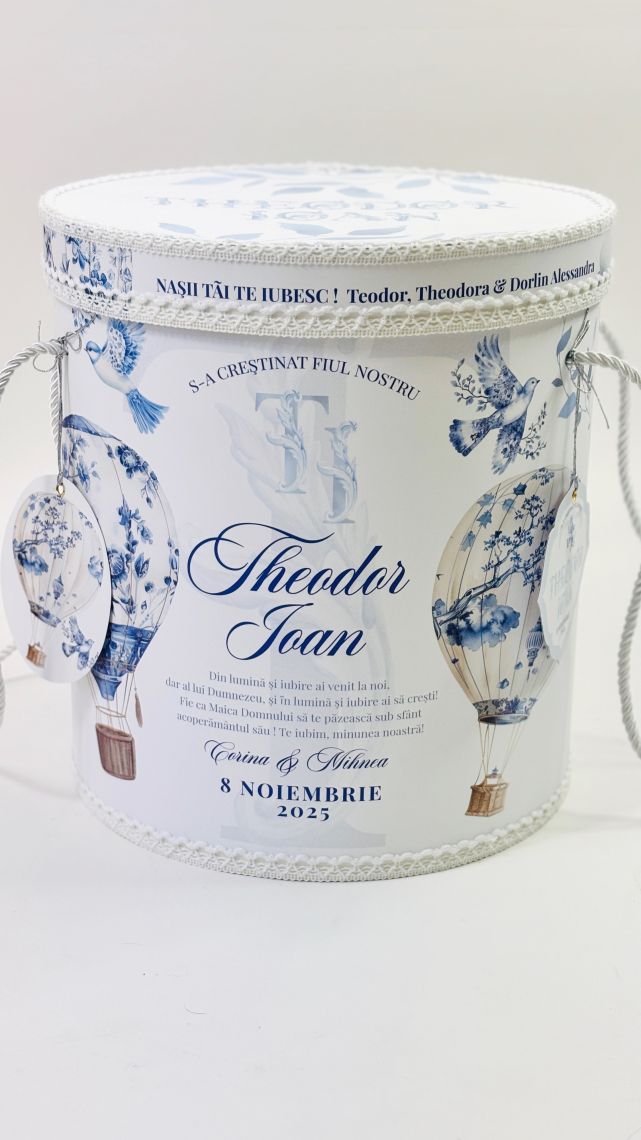 Cutie personalizată în tematica aleasă, cu dimensiuni standard: 33 cm (H) x 30 cm (D)