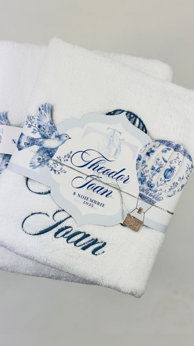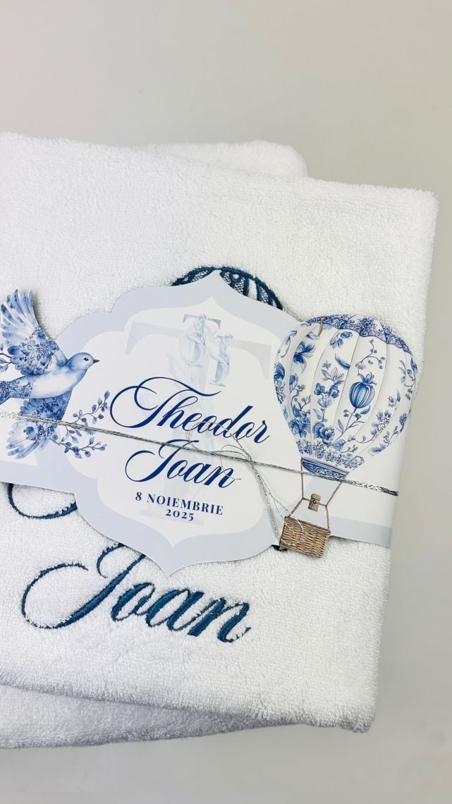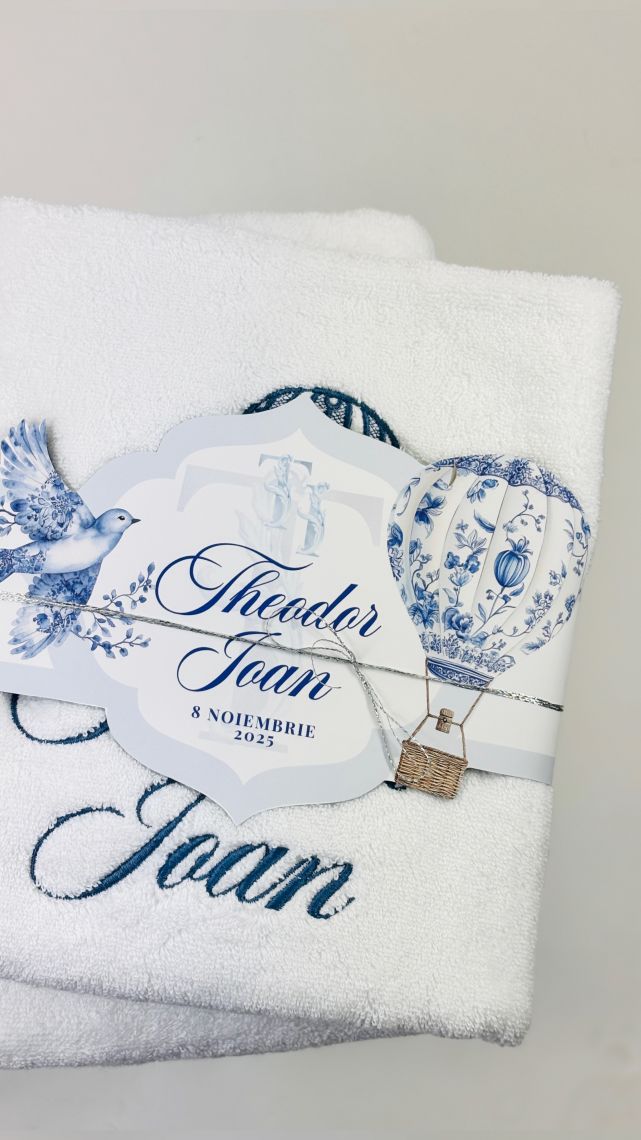 Brodarea prosopului mare și a pânzei de botez sunt incluse în preț.