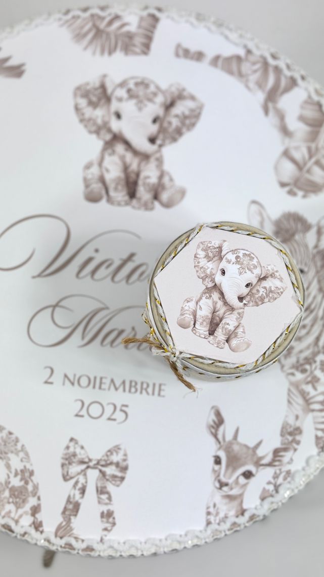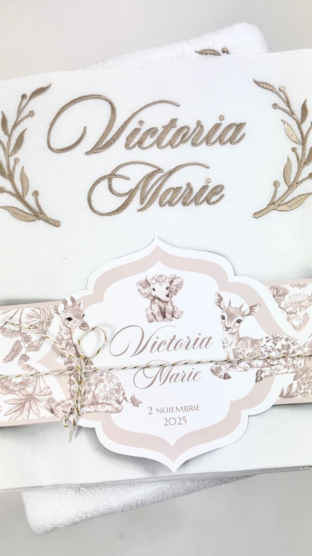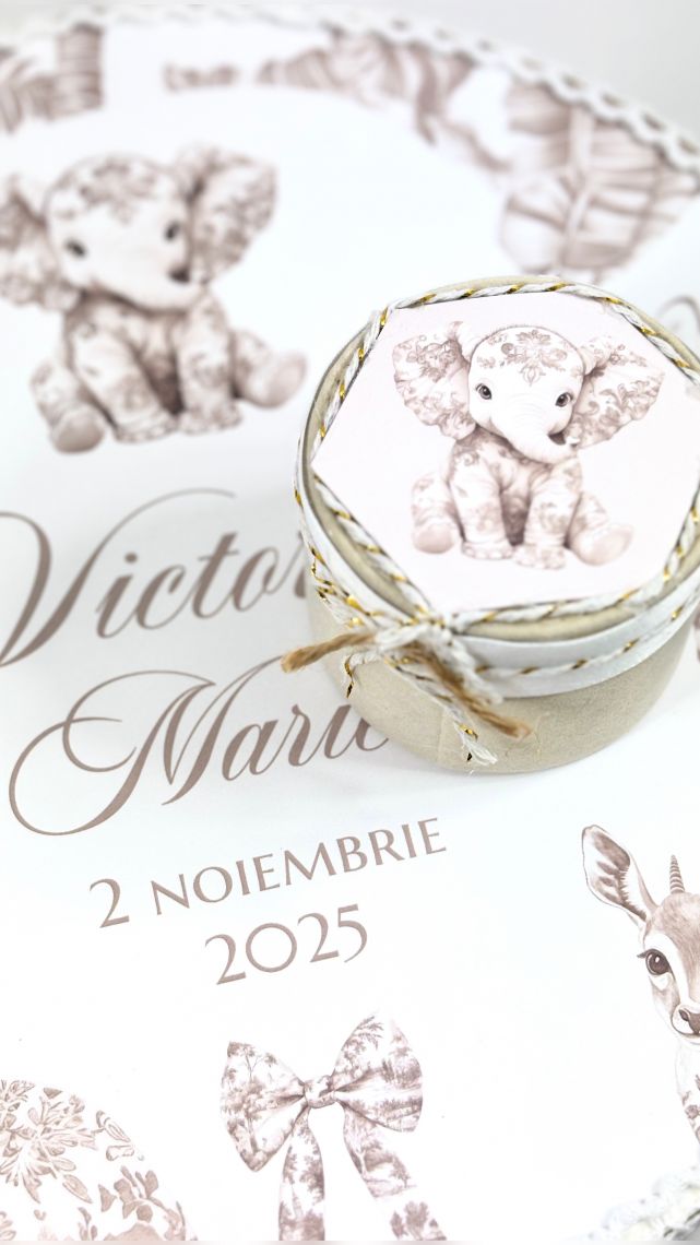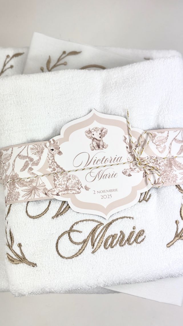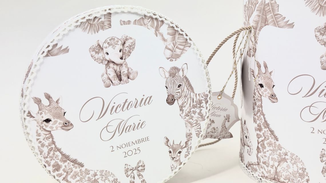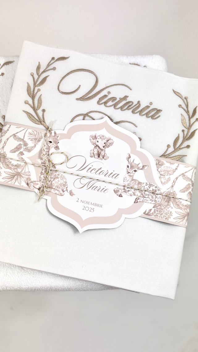 Inspirat de eleganța clasică Dior și de farmecul naturii, trusoul Dior Beige Nude Baby Safari aduce o notă modernă și rafinată momentului botezului. Nuanțele calde de nude și beige se îmbină cu detalii inspirate din lumea animalelor exotice – elefănței, girafe și leuți delicați – într-un design unisex, perfect pentru fetițe sau băieței. Fiecare element este creat cu grijă, pentru a transforma ziua botezului într-o poveste cu stil și emoție.