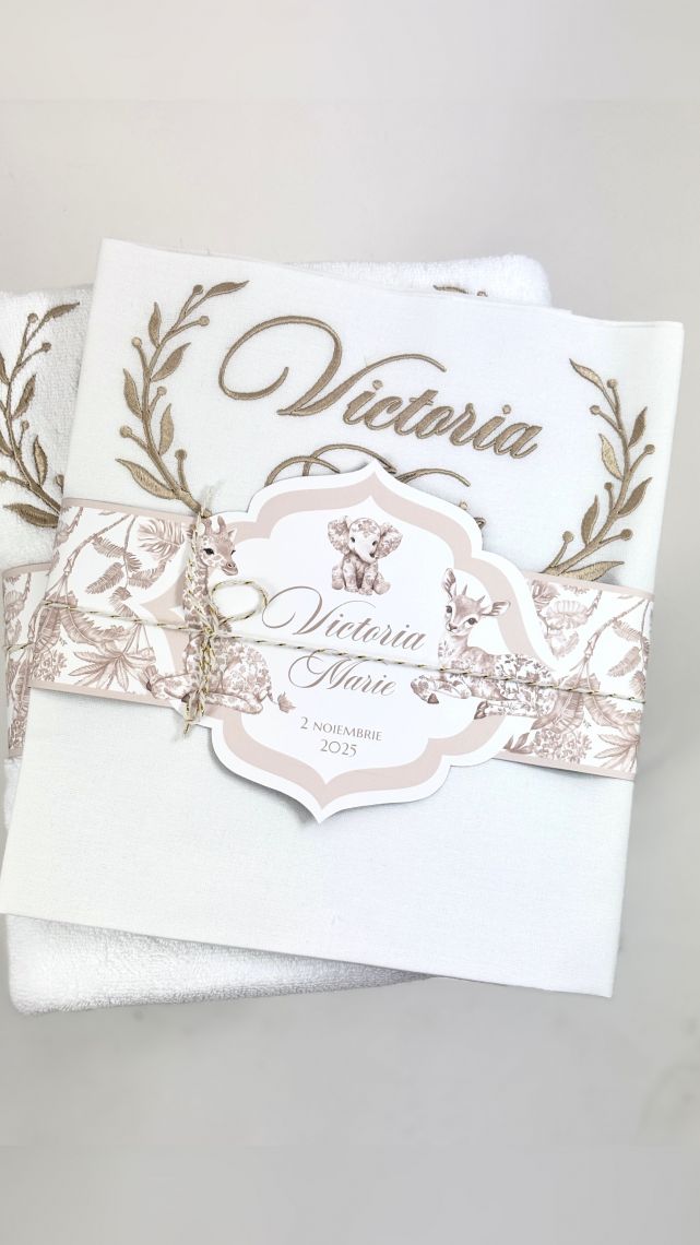 Un set complet, elegant, cu piese utile pentru ceremonia botezului, dar și pentru păstrarea amintirilor.