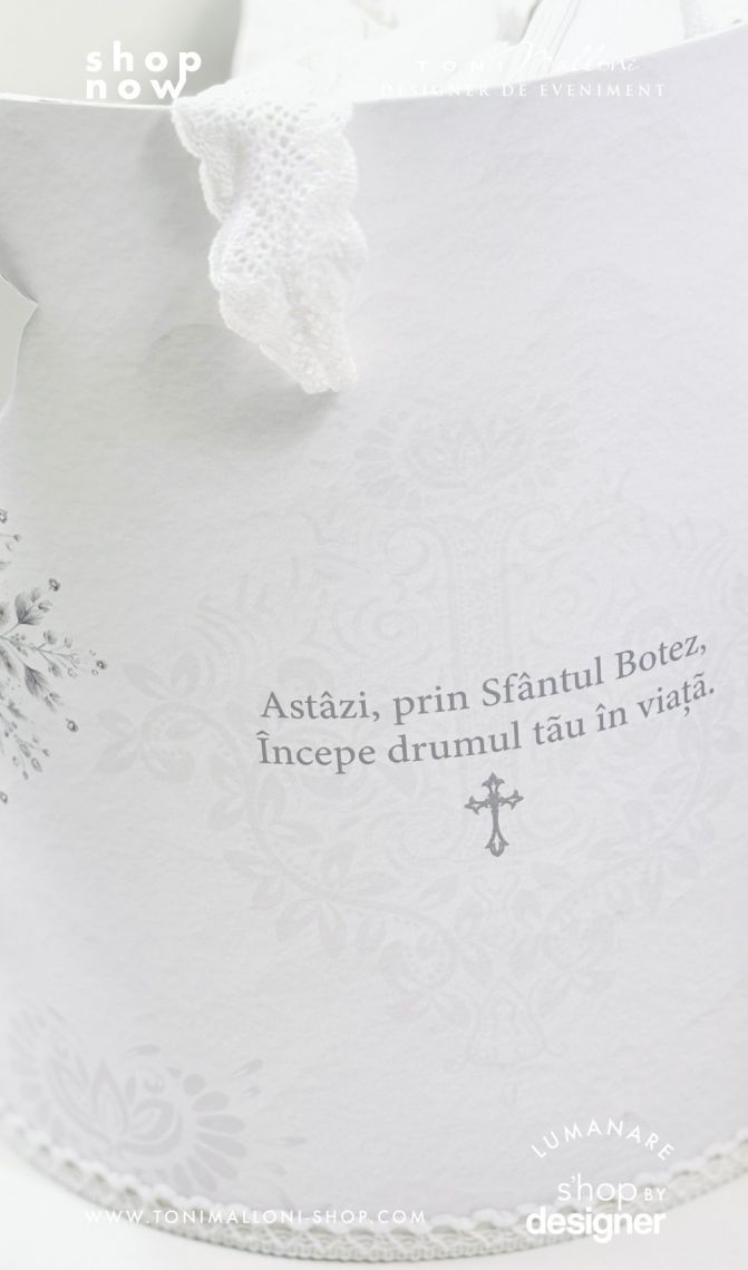 Dacă doriți să organizați botezul alături de noi și să beneficiați de servicii complete de planning și design, ne puteți scrie la shop@tonimalloni-shop.com.