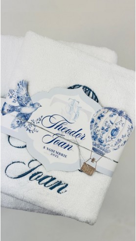 Broderia personalizată, realizată cu grijă și atenție la detalii, pune în valoare fiecare piesă, iar numele bebelușului este cusut cu rafinament pe pânză și prosoape, adăugând un plus de personalitate și căldură.