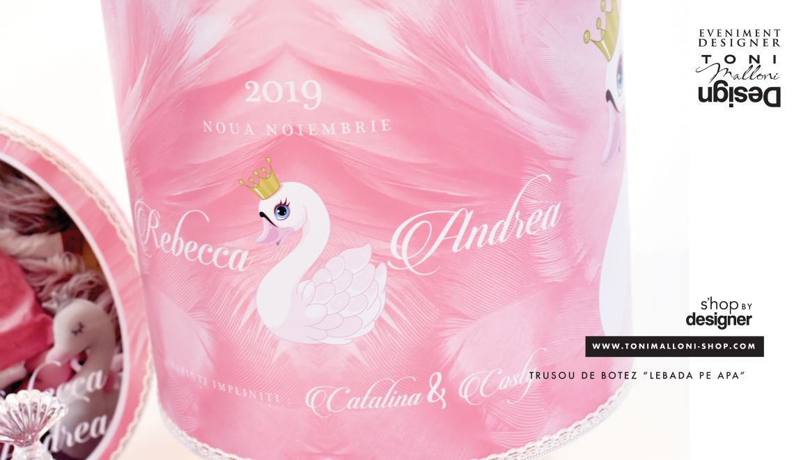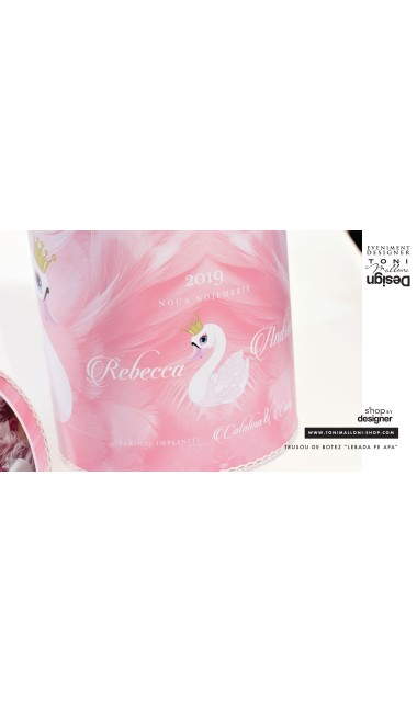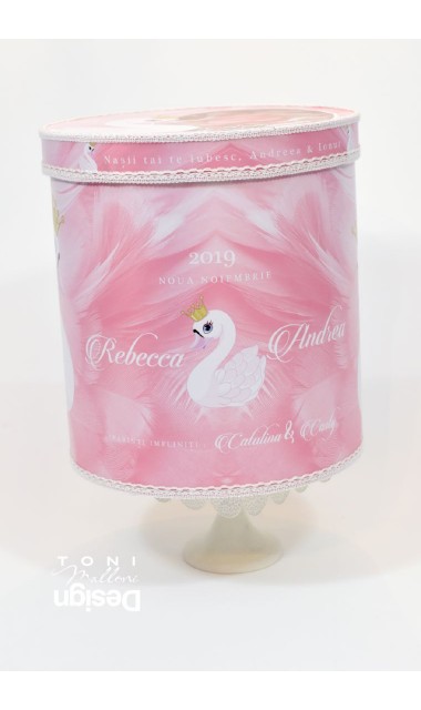 – cutie rotundă pentru trusou, decorată cu motive elegante și inspirate de lebăda grațioasă
