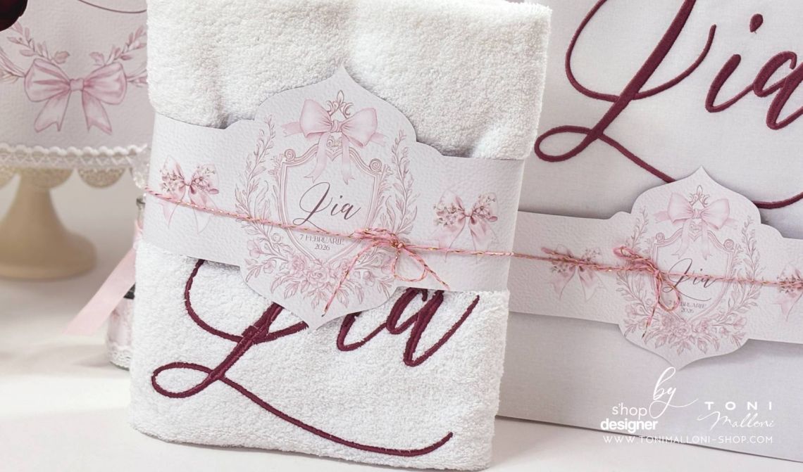 Trusoul de botez „ Pink Bows ” îmbină eleganța atemporală cu un aer modern, într-un design extrem de finuț și în trend.