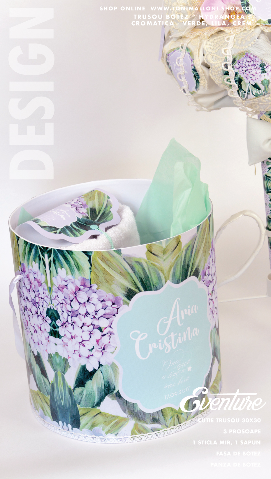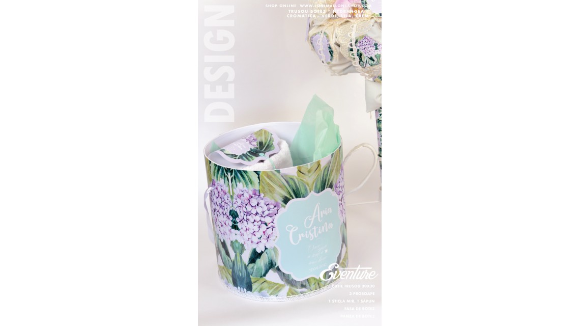 – cutie de trusou personalizată în tematica florală a setului