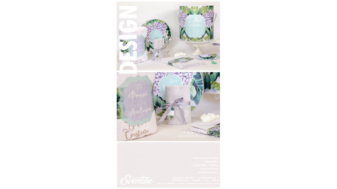 Trusoul de botez „Hortensii cu dragoste” este un set rafinat și delicat, care aduce în prim-plan frumusețea hortensiilor în nuanțe armonioase de verde și mov, perfecte pentru fetițele care iubesc eleganța naturală. Broderiile personalizate cu atenție și finețe transformă acest trusou într-o alegere specială, plină de gingășie pentru ziua botezului.