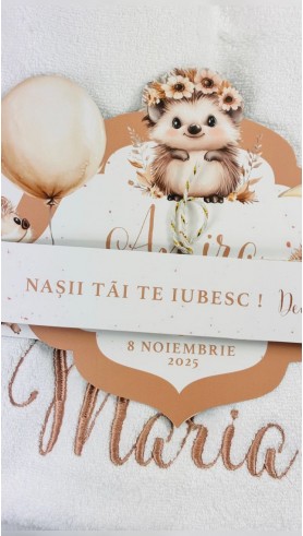 Trusoul de botez „Domnișoara Castor” surprinde gingășia și farmecul naturii printr-un design brodat cu delicatețe în culori pastelate, special creat pentru fetițe. Motivele inspirate din lumea castorilor și elementele naturale creează o atmosferă caldă și primitoare, perfectă pentru ziua botezului.