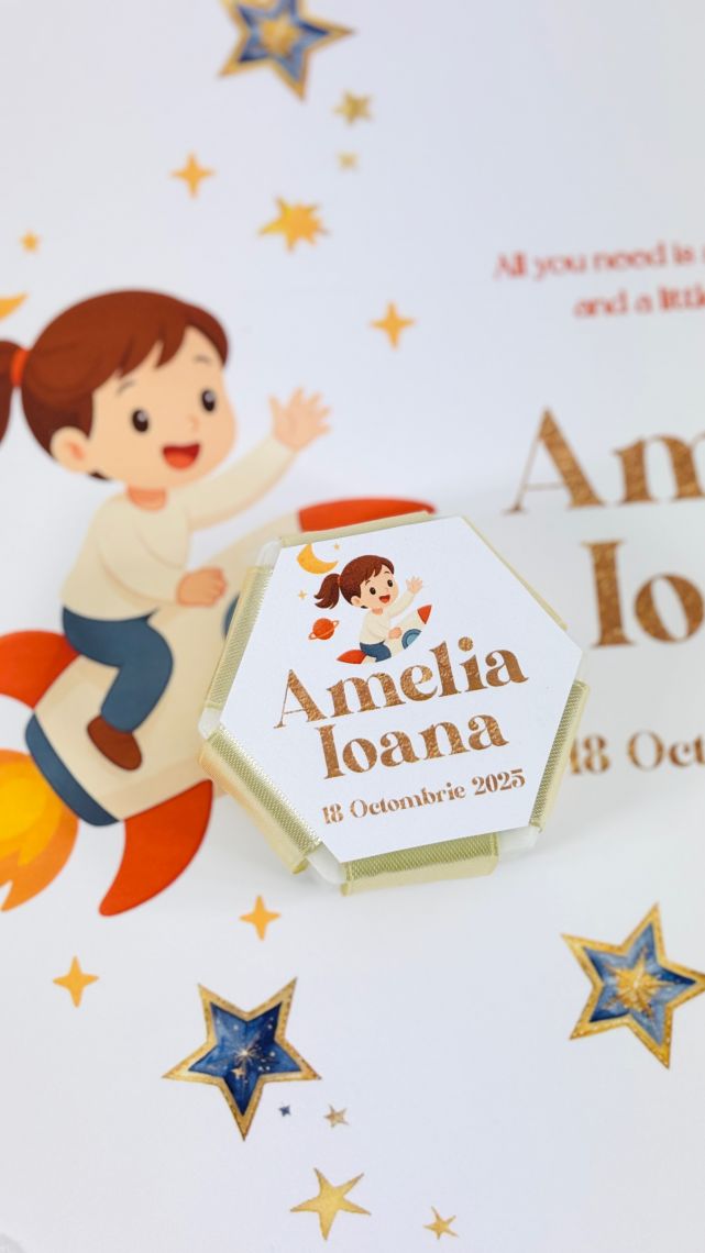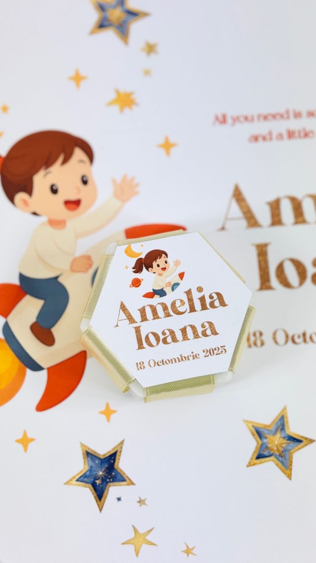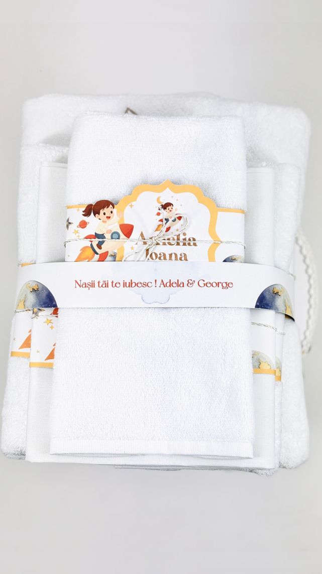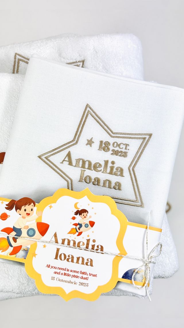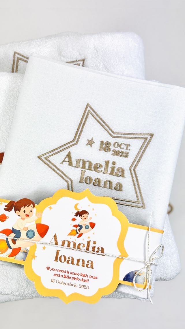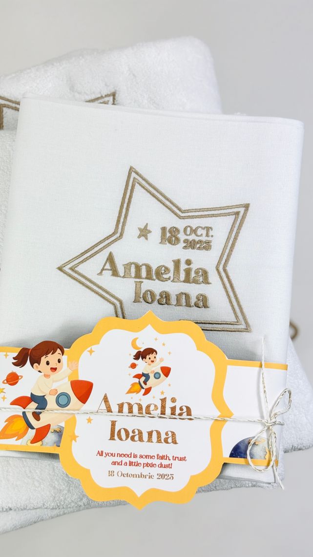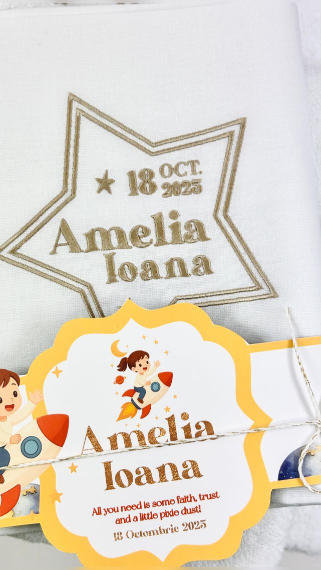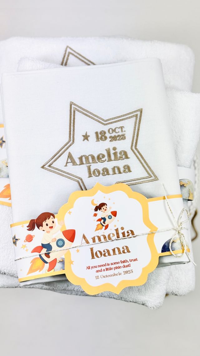 Inspirat din universul fascinant al stelelor, trusoul Galaxy Girl este dedicat fetițelor care aduc lumină și energie oriunde apar. O combinație jucăușă între roz pastel și accente cosmice, cu detalii brodate care amintesc de rachete, galaxii și micile comete ce luminează cerul nopții.